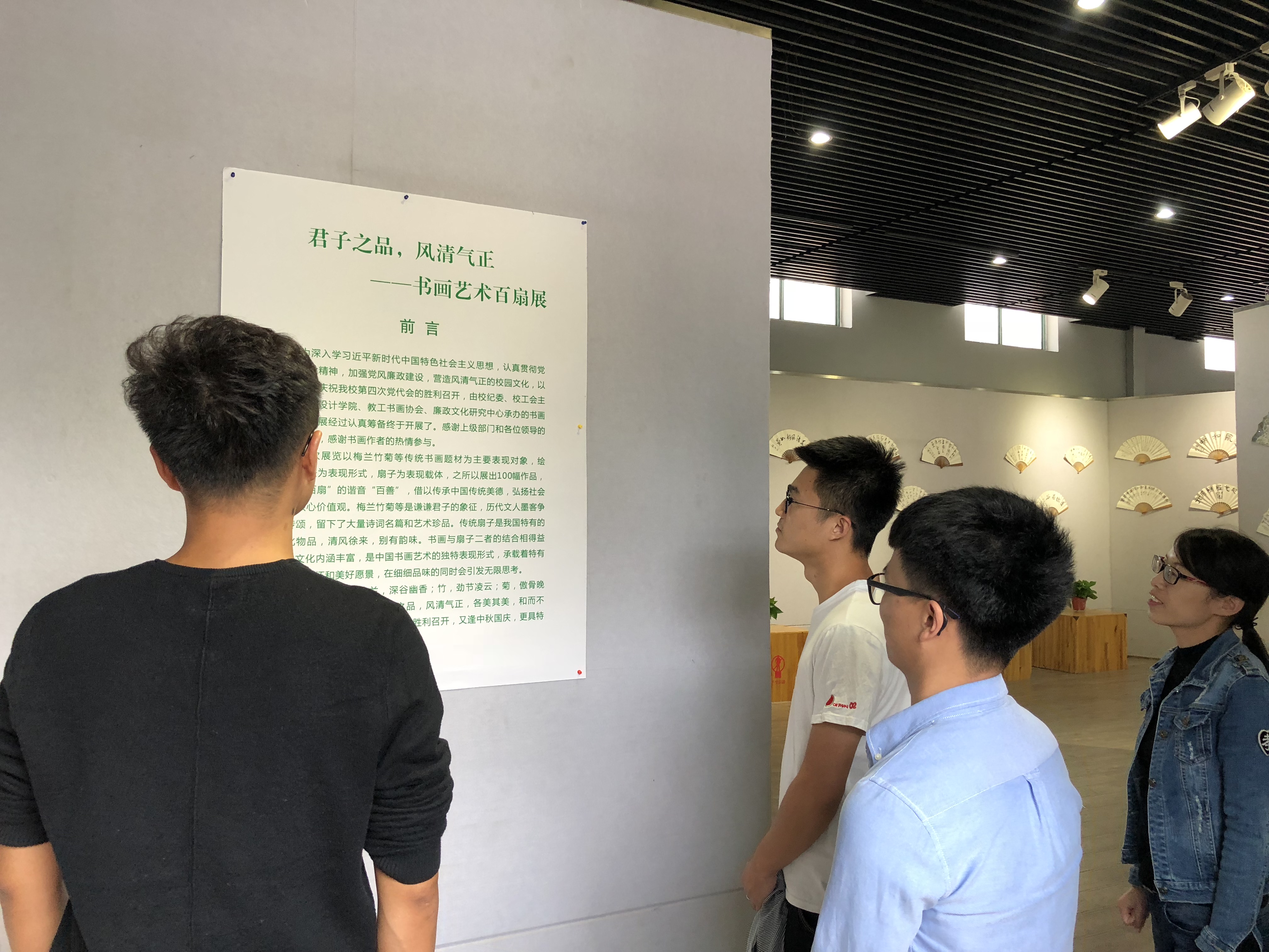 本次展览以中国特有的折扇为载体,以梅兰竹菊为表达主题,寓意高贵品质和崇高品德,通过书法和绘画的表现形式,表现正直、谦逊、纯洁而有气节的思想感情。此次展览文化内涵丰富,具有很强的艺术性、思想性和教育性。展现了我校教职工在文化素养上面的深厚积蓄,也营造了风清气正的文化氛围。参观人员既得到了艺术的熏陶的同时又得到了廉政教育的洗礼。