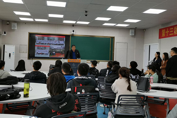 韩处长和同学们讲述了自己在轻院学习成长的经历,分享了喜德盛自行车有限公司董事长谭伟龙等几位机电优秀校友的奋斗创业历程,鼓励同学们秉承着“为之则易,不为则难”的校训和“朴实、务实、扎实”的校风,勤奋学习、团结友爱,争做好青年、奋进新时代。