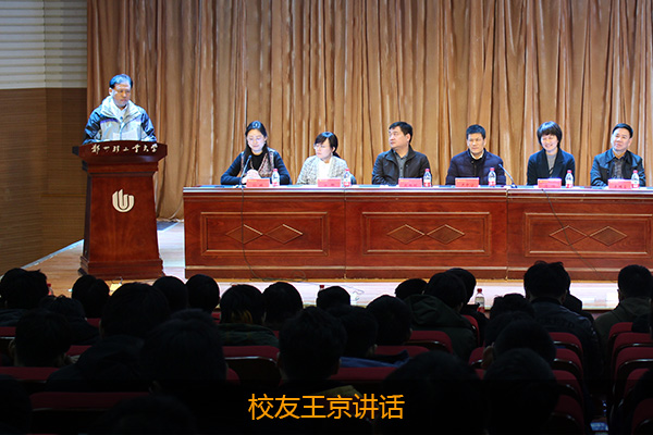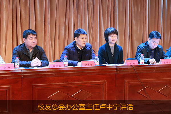 随后,学校校友总会办公室卢中宁主任讲话,卢主任介绍了校友总会的基本情况,宣传了校友在学校建设和发展中发挥的作用,希望全体同学以优秀为榜样,更加发奋图强,不辜负自己无悔的青春年华,在毕业后要保持与母校联系,及时在微信校友系统中注册,主动与当地校友组织建立联系,利用好校友资源助力自己的专业发展。