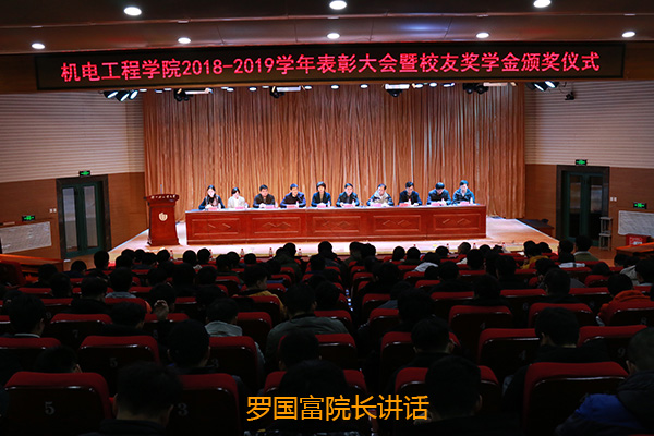 最后,我院罗国富院长代表学院讲话,罗院长向受表彰的同学表示热烈的祝贺,感谢学校相关部门对机电学院的大力支持,向为我院捐资设立校友奖学金的杰出校友王京先生、95级校友表示崇高敬意。罗院长对同学们提出了殷切的希望,一是要争做理想坚定、志存高远的传承者;二是要争做品德优秀、情操高尚的奋进者;三是要争做勤奋学习、锐意进取的开拓者。希望同学们把爱国主义作为始终高扬的光辉旗帜,把勤奋学习作为人生进步的重要阶梯,把深入实践作为成长成才的必由之路,把奉献社会作为不懈追求的优良品德。在学校、学院、校友搭建起来的平台上,秉承“为之则易,不为则难”的校训,用青春的奋斗和汗水奏响人生华美的乐章。