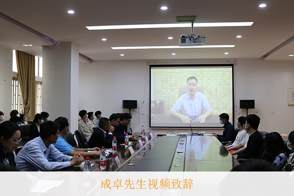机制96级校友、创显光电创始人兼总经理成卓先生通过视频致辞,他表示大学生正处于学习知识、增长能力的最佳阶段,也是中国百年未有之大变局的关键时期,希望学弟学妹们利用好宝贵的大学时光,打好坚固的专业基础,提高各方面能力,所学即学其所用,在毕业后不仅成为家里的顶梁柱,更能成为建设国家的中坚力量。