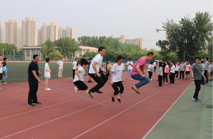 活动包括丰富多彩的团体项目和个人项目。团体项目分为“跳大绳”与“无敌风火轮”,老师们以教研室为单位组队,在“跳大绳”比赛中每个队都跳得整齐划一,队员们身轻如燕,轻蹲、起跳,上演了一场精彩的“对决”;“无敌风火轮”项目中,4人一组的“风火轮”在场上快速的移动,你追我赶,看点十足。个人赛分为“踢毽”和“跳小绳”,老师们踢毽子跳绳精彩纷呈,喝彩声此起彼伏,大家在酣畅淋漓的比赛中享受着传统体育运动的欢乐。