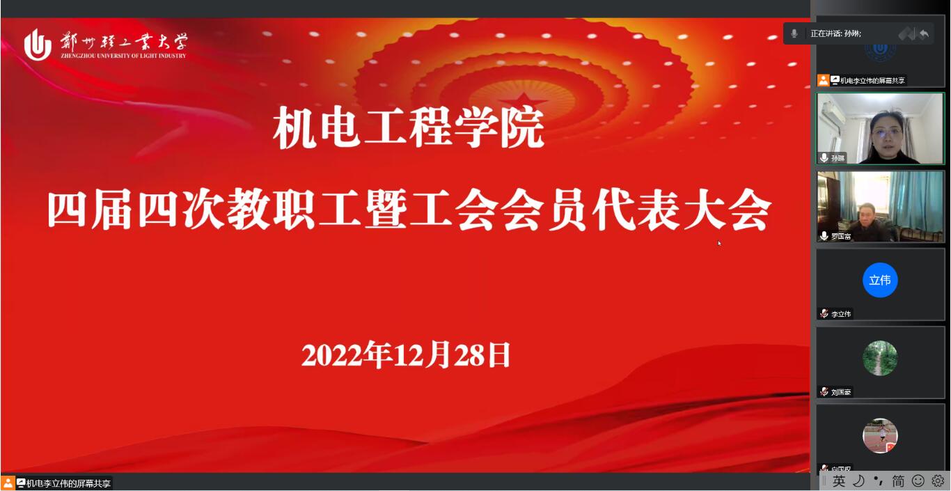 通过线上会议形式召开四届四次教职工暨工会会员代表大会。学院全体代表参加了大会,会议由学院工会主席孙琳主持。