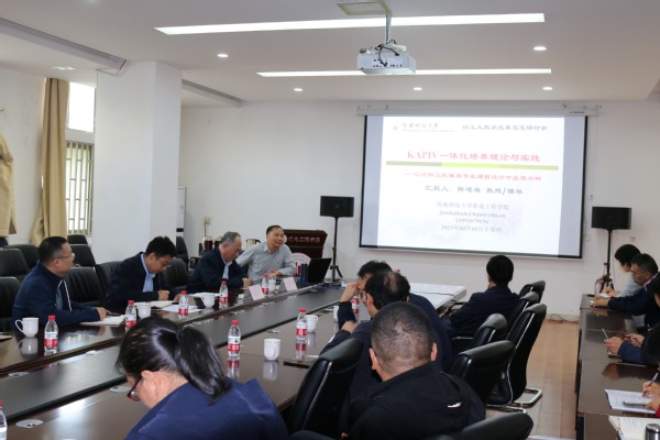 会上,李浩院长首先对韩建海教授的到来表示热烈欢迎,并简要介绍了韩建海教授的个人情况。接着,韩建海教授以“KAPIV一体化培养理论与实践”为题,强调如何加快知识向能力转化,是大学教学研究面临的重大问题,传统课堂教学和工程实践训练过程相互分离,流水线式教学模式很难打通知识与能力之间的界面障碍,不力于促进知识向能力的转化。为此,提出了将知识(Knowledge)、能力(Ability)、实践(Practice)、创新(Innovation)、品行(Virtue)一体化培养(简称KAPIV)教改理念,以体现理论与实践的融合,各种能力之间的叠加,最终加快知识向能力的转化。并以河南科技大学机械类专业课程设计为案例,具体介绍了KAPIV一体化培养的教改理念、实施方法和实施效果。