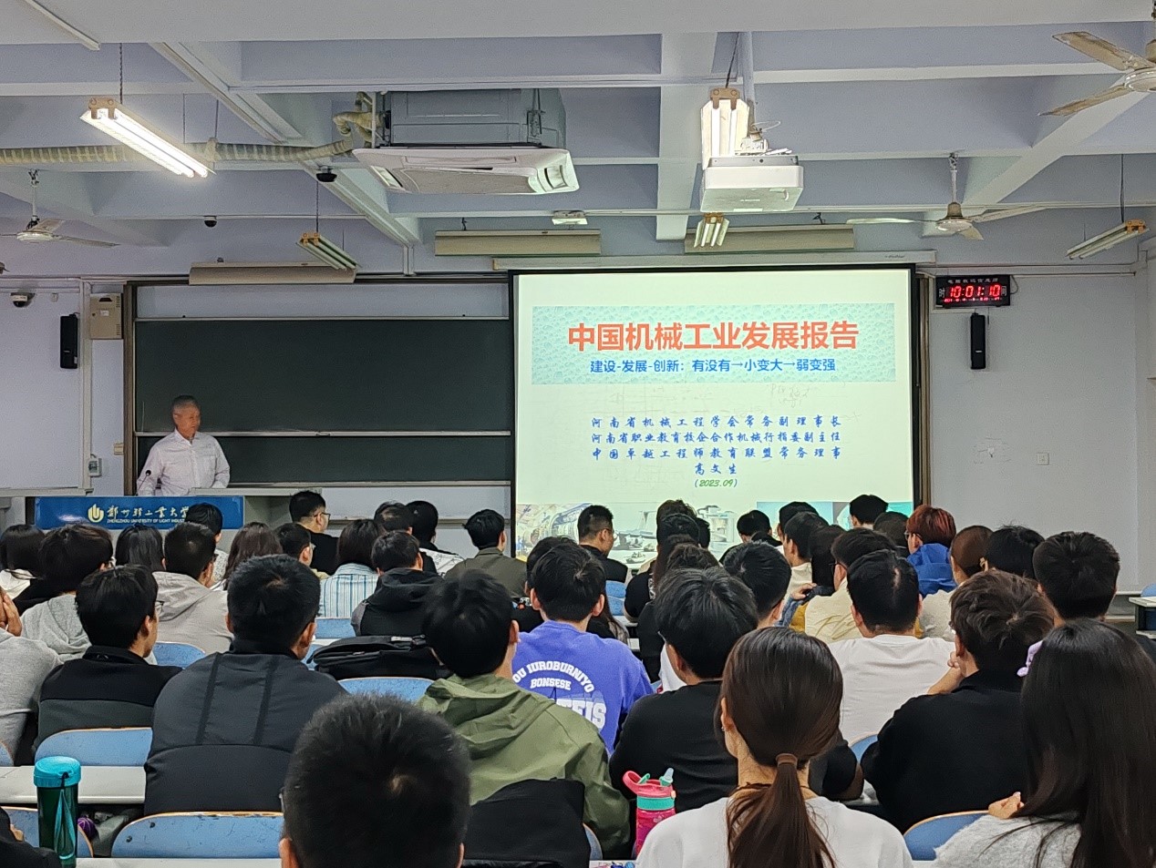 高文生教授从我国机械工业的发展历程、各阶段面临的关键挑战、取得的代表性成果、河南省企业做出的典型贡献等多个层面,详细阐述了我国机械工业的发展史。高老师精彩的报告内容和坚毅的精神品格感染了大家,现场掌声雷动。此次报告对于研一新生了解我国机械工业发展历史、激发科研报国热情、培养坚毅性格和家国情怀起到了积极作用。