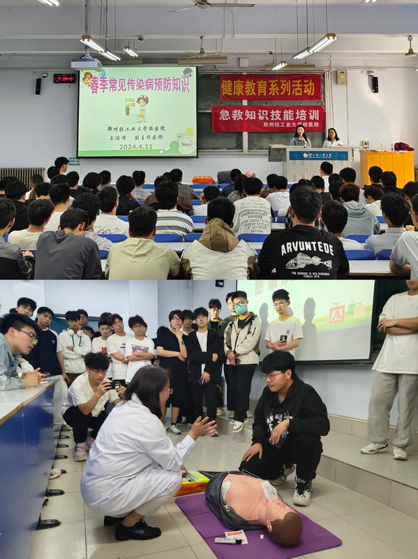 为普及春季常见传染病预防与急救知识,营造健康、安全、稳定的校园环境,4月11日,机电工程学院联合校医院开展春季常见传染病预防与安全急救知识普及宣讲活动,学院辅导员张东旭老师、各年级寝室长及学生代表参加活动。