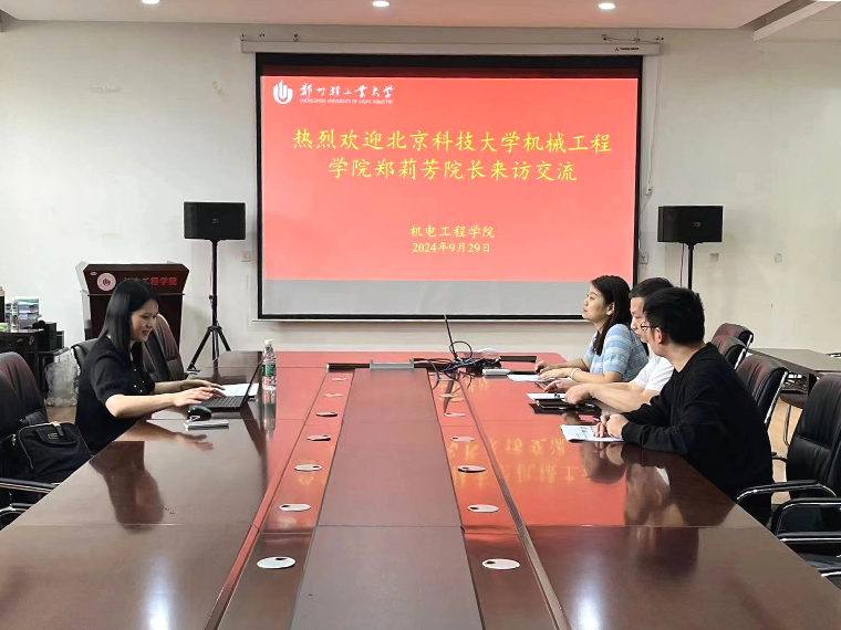 2024年9月29日下午,北京科技大学机械工程学院郑莉芳副院长来访交流。河南省机械装备智能制造重点实验室主任何文斌、科技处副处长曹阳、副院长侯俊剑、智能制造工程专业骨干教师杨文超参加了座谈会。
