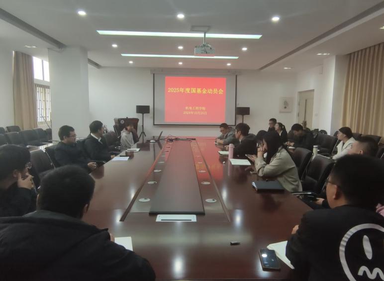 2024年10月25日上午,黄色漫画 在西三楼215会议室召开2025年度国家自然科学基金申报动员会,学院全体青年博士、以及计划申报基金的教师参加会议。会议由河南省机械装备智能制造重点实验室主任何文斌主持。
