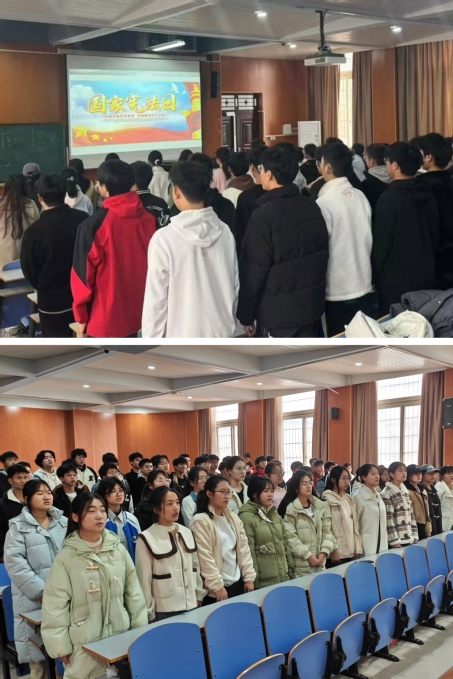 12月4日上午,黄色漫画 组织师生开展“宪法晨读”活动。在观看第九届全国学生“学宪法 讲宪法”活动优秀选手展演后,学生代表们齐声跟读宪法部分条款,“中华人民共和国的一切权利属于人民”“中华人民共和国第一部宪法诞生于1954年”等内容句句铿锵有力,传递着支持和捍卫宪法权威的决心,教室里洋溢着浓厚的学习宪法氛围。此次活动让学生深刻体会到宪法作为国家根本法的重要性,鼓励他们自觉维护宪法和法律的权威,形成遵守宪法、履行公民义务的行为习惯。