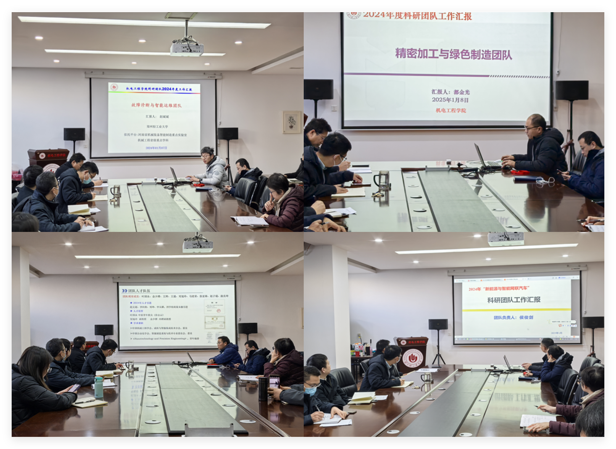 工作汇报环节,智能制造系统工程、摩擦磨损与新材料、机电系统动力学与控制、精密加工与绿色制造、故障诊断与智能维护、新能源与智能网联汽车、微纳制造与智能传感等7个科研团队依次汇报各自团队的年度工作开展情况。汇报内容涵盖团队研究方向凝练、人才引育、项目与经费、研究成果、研究生培养和2025工作展望等。