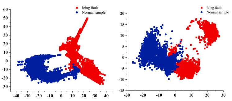 论文基于流形学习(ISOMAP)和条件生成对抗网络(CGAN)降低维度、增加结冰和开裂样本量,从而提高诊断准确性。建立了ISOMAP降维模型来捕获结冰和开裂样本的总体特征分布,设计了CGAN网络模型在低维流形空间中生成叶片故障样本。在多个分类器模型下与SMOTE和ADASYN算法的实验比较表明,该方法有效地解决了维度高和多类样本不平衡的问题,显著提高了分类器的性能。与时空学习网络方法和ResDenIncepNet-CBAM算法的对比结果进一步突出了本文方法的优越性和鲁棒性。