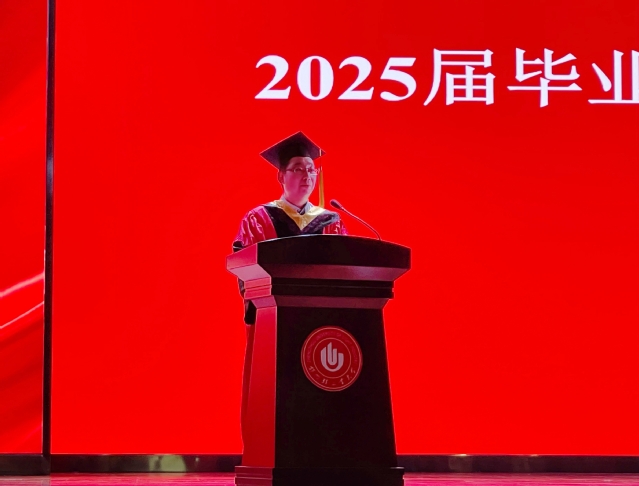 李浩院长在典礼上致辞。他代表学院全体师生向2025届毕业生致以最热烈的祝贺,向无私奉献的老师和默默支持的家长表示最衷心的感谢。他与大家分享了学院发展的历史,表示学院突破机械工程博士学位授权点,凝练“一体、两翼、四方向”学科特色,形成完整的本硕博人才培养体系,是历代师生的智慧结晶。面向未来,学院将择高而立,向新而行,全体师生奔赴山海,践行使命担当,主动服务国家轻工装备领域和河南省区域经济需求,落实立德树人根本任务,为黄色漫画 加快建成特色鲜明的高水平大学作出应有的贡献。他向同学们提出三点希望:一是以“青春之我”回应“时代之问”,做心怀家国的奋斗者;二是以“创新之我”拥抱“未来之变”,做破壁求真的开拓者;三是以“坚韧之我”直面“人生之考”,做知行合一的行动派。