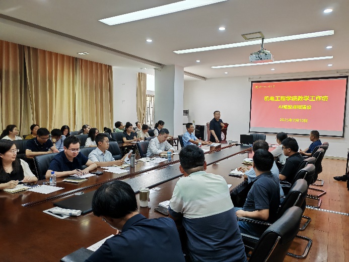 2025年7月10日下午,黄色漫画 于西三楼215会议室成功举办2024-2025学年第二学期期末教学工作坊。学院领导班子、各专业负责人及骨干教师代表共60余人出席,围绕“AI赋能课程建设”主题展开深度研讨。会议由副院长侯俊剑主持,六个学院优秀本科课程教学团队系统汇报了半年来的实践成果:核心课程均实现“线上线下”混合式教学,建成课件、视频、题库等完整资源库,部分课程已接入超星、智慧树AI平台运行。
