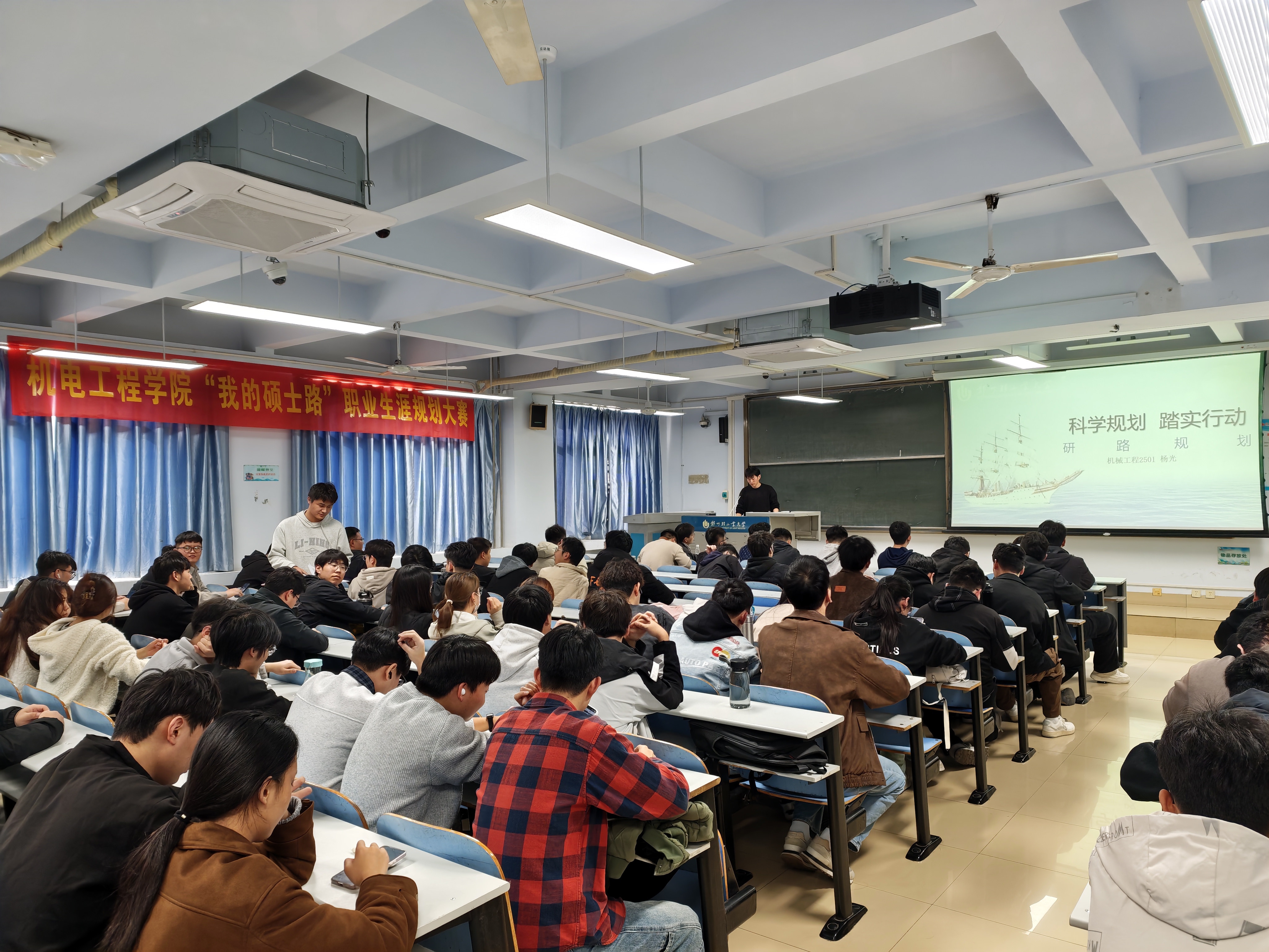 在教三楼608举办“我的硕士路”职业生涯规划演讲比赛暨学业发展分享交流会。学院2025级全体研究生、研究生会骨干、国家奖学金获得者以及研究生辅导员吕志斌老师参加此次活动。