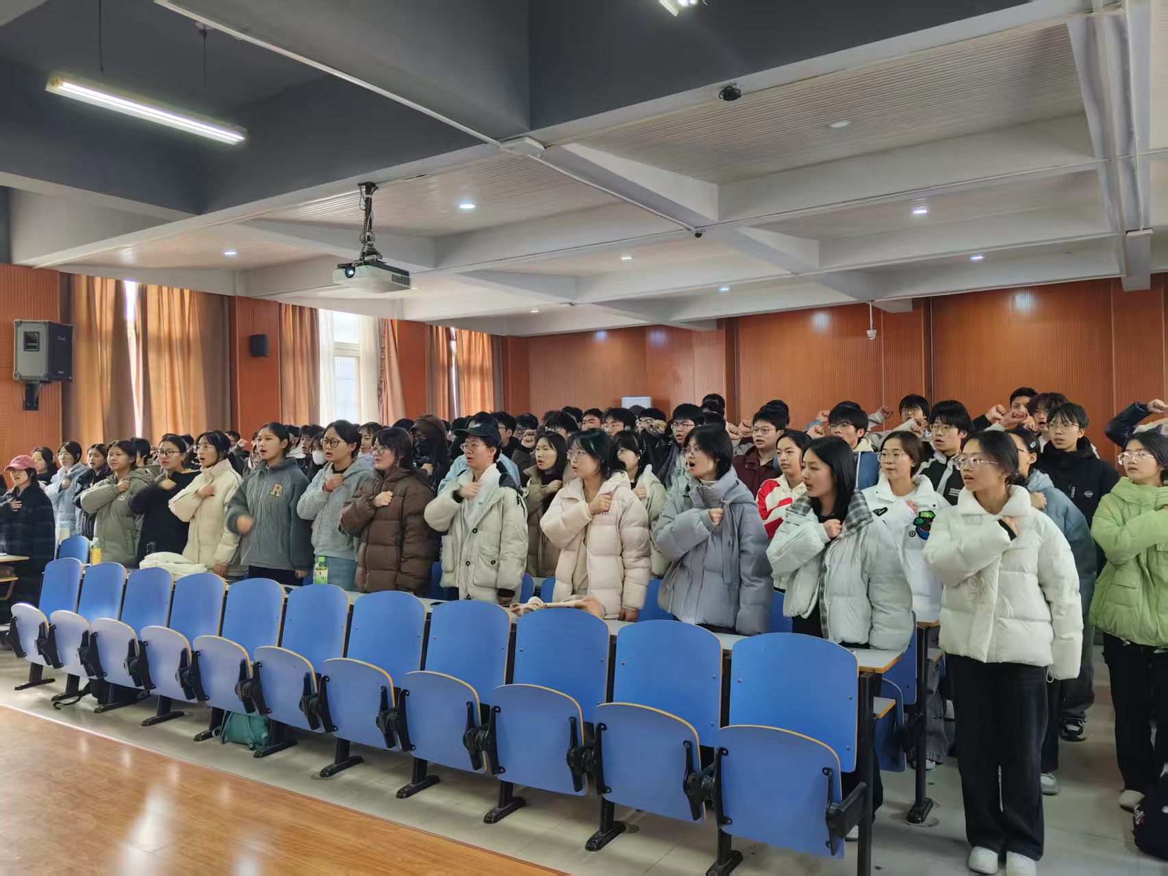 同日下午,学院延续宪法学习的热情与氛围,组织班级学生代表开展《宪法伴我们成长》歌曲合唱活动。在指导老师的带领下,同学们认真学唱,共同理解歌词中蕴含的公民权利与义务。歌声唱出了新时代青年对宪法的尊崇与信仰,表达了他们将宪法精神内化于心、外化于行的决心,展现了机电学子积极向上的精神风貌和浓厚的爱国法治情怀。